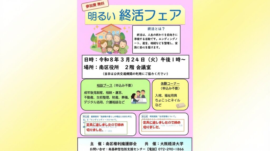 【堺市南区役所】3/24開催|明るい終活フェア 出展のお知らせ